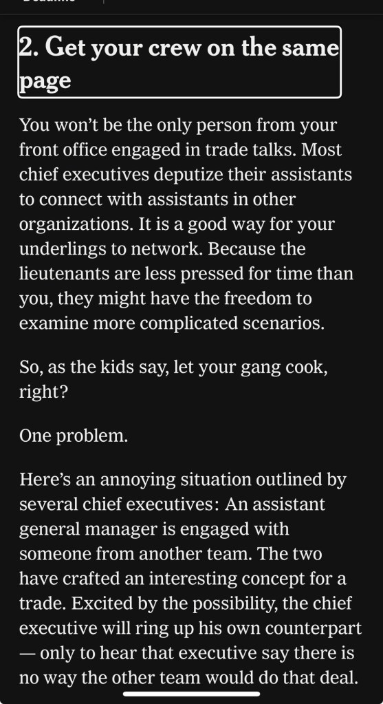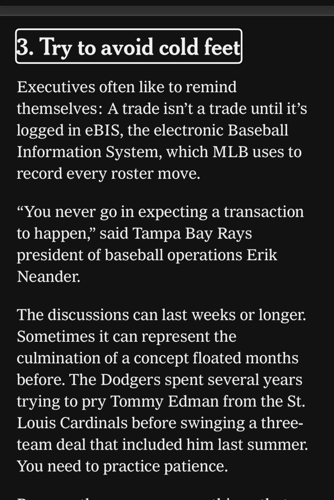 The road to respect closing business deals is the exact same as making baseball trades in late summer.